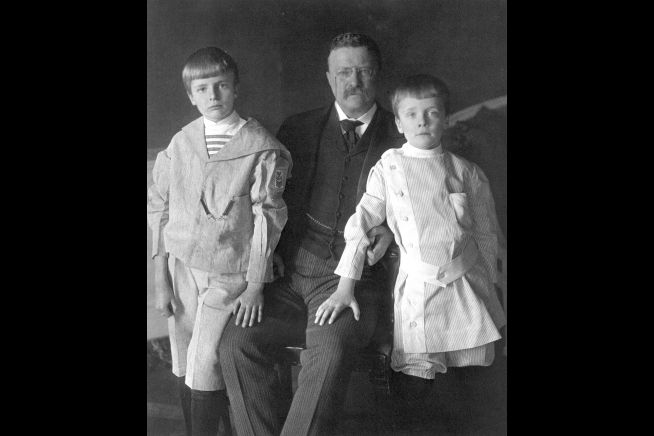No President enjoyed romping with his family more than Theodore Roosevelt. Pictured here with Archie and Quentin.