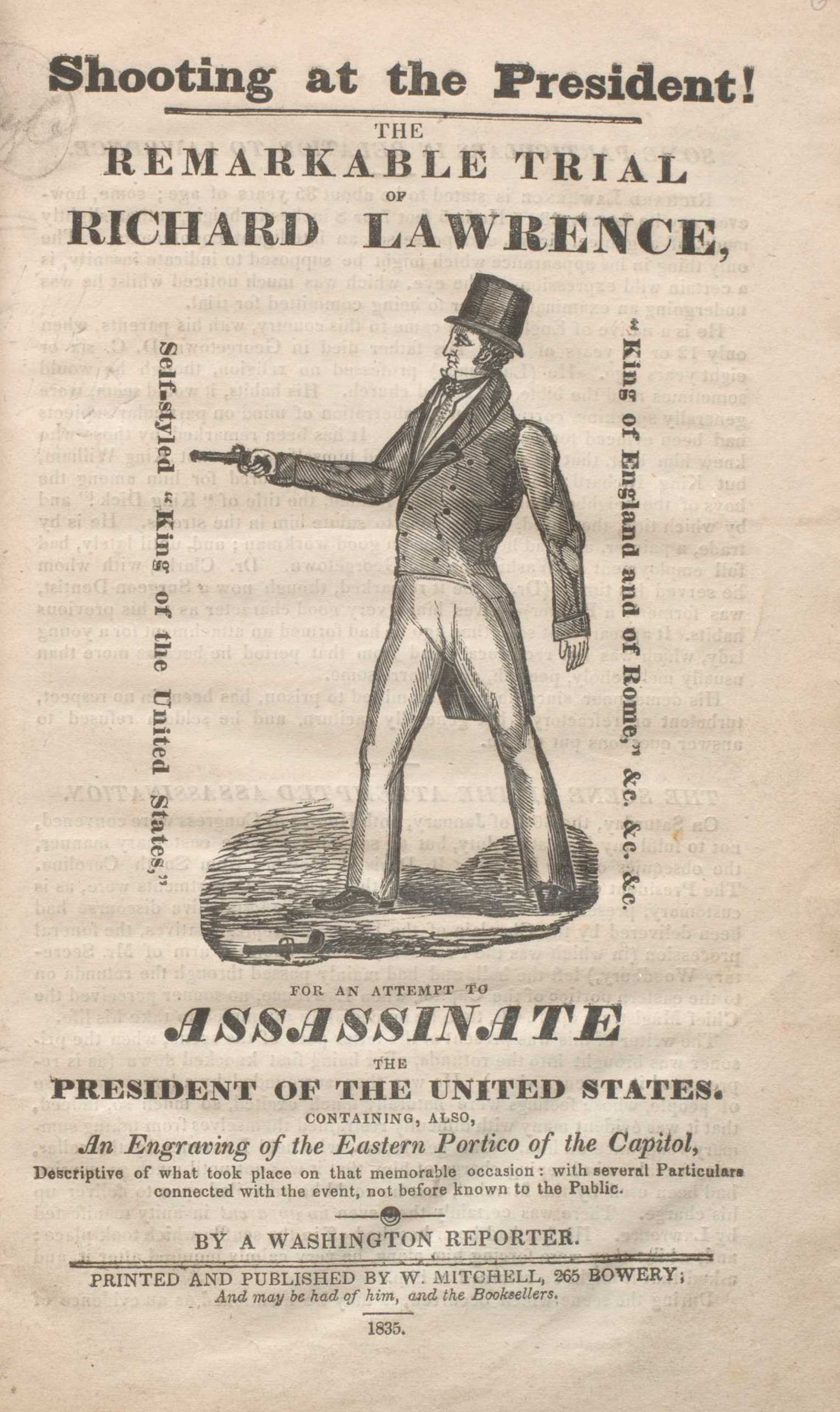 Richard Lawrence (1800?-1861) was born in England, but had migrated with his family to the U.S. when he was still a child. He had become a house painter, and was seemingly a solid citizen living in the Washington DC area.