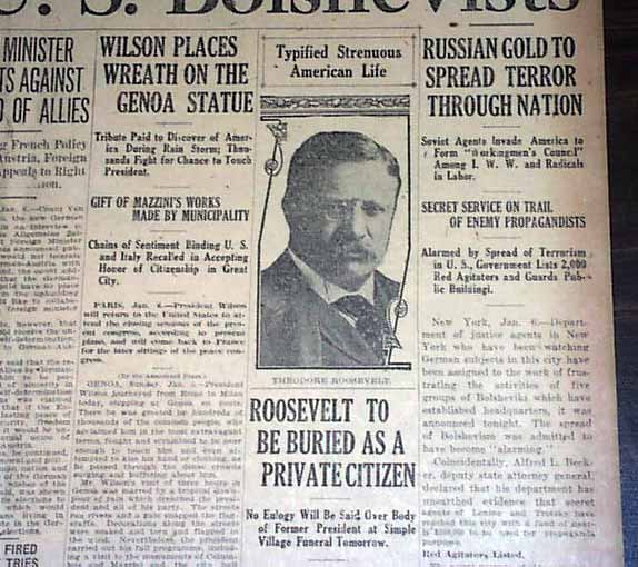When Theodore Roosevelt died on January 6, 1919, the world was stunned.